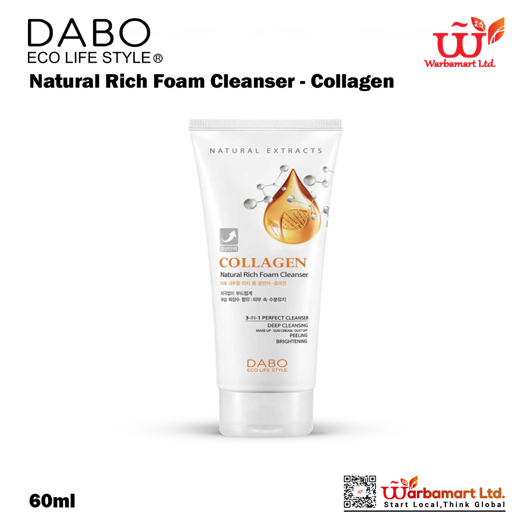 • The product is suitable for aging skin. Dabo Dabo Collagen Korean premium facial cleanser gives you a clean, clean and non-greasy skin that lasts up to 10 hours.