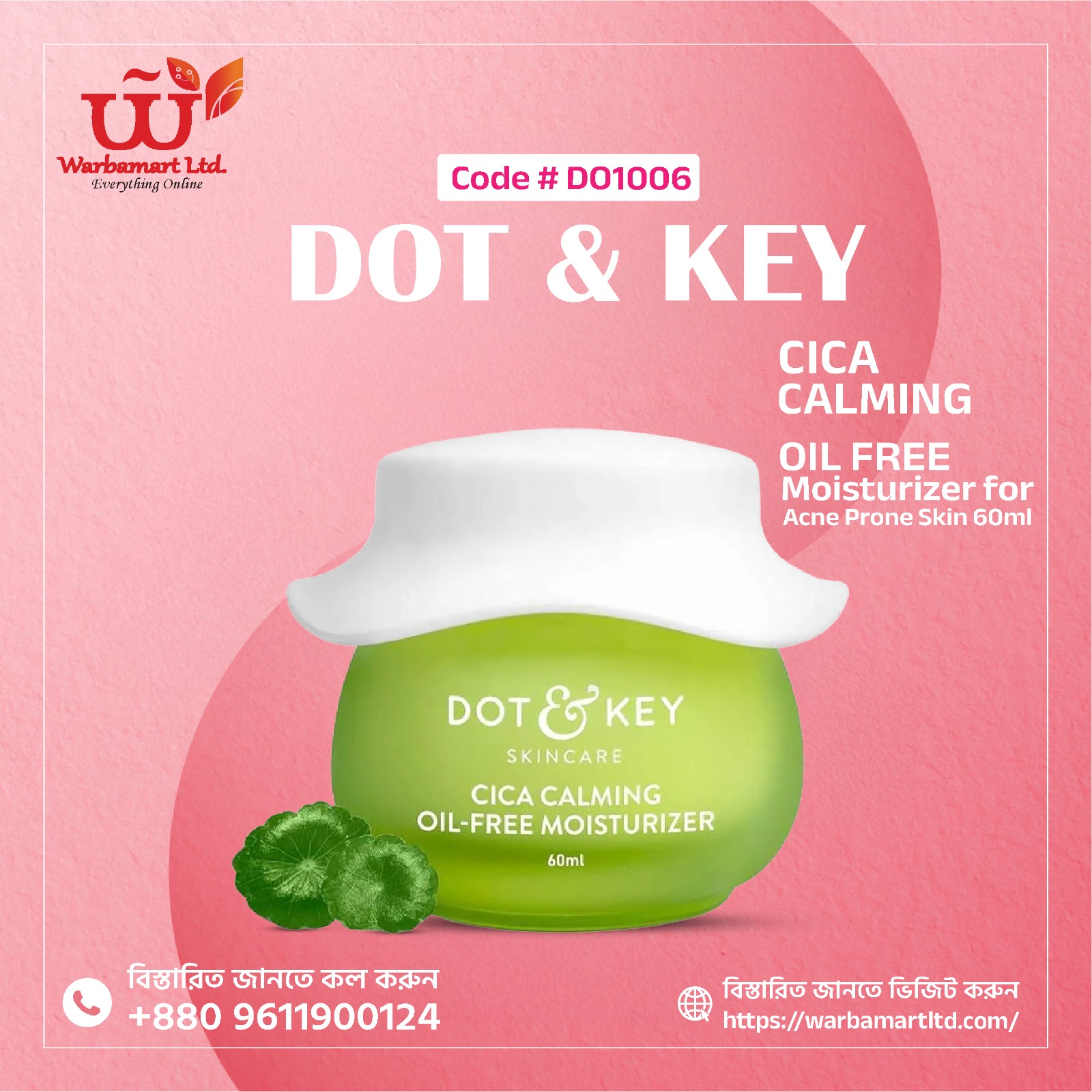 Dot & Key Cica Calming Oil-Free Moisturizer is designed specifically for acne-prone, oily, and sensitive skin. Infused with Cica (Centella Asiatica), this lightweight gel-cream moisturizer calms redness, strengthens the skin barrier, and provides lasting hydration without a greasy finish. Achieve healthy, balanced, and clear skin every day.