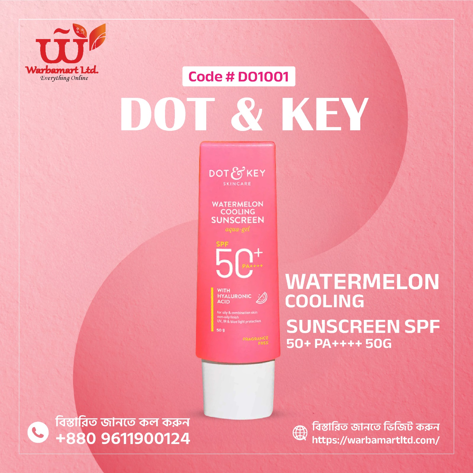 Dot & Key Watermelon Cooling Sunscreen SPF 50+ PA++++ is a lightweight, non-greasy sunscreen that provides broad-spectrum UVA & UVB protection while delivering an instant cooling effect and long-lasting hydration for all skin types.