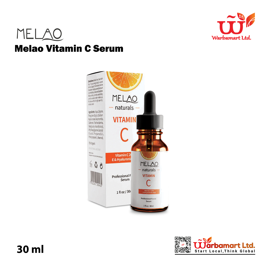 Melao Vitamin C Serum 30 ml Achieve visibly brighter, clearer, and more youthful-looking skin with. This lightweight, fast-absorbing formula is powered by 20% Pure Vitamin C + Vitamin E, two potent antioxidants known for fading dark spots, boosting radiance, and repairing damaged skin cells.