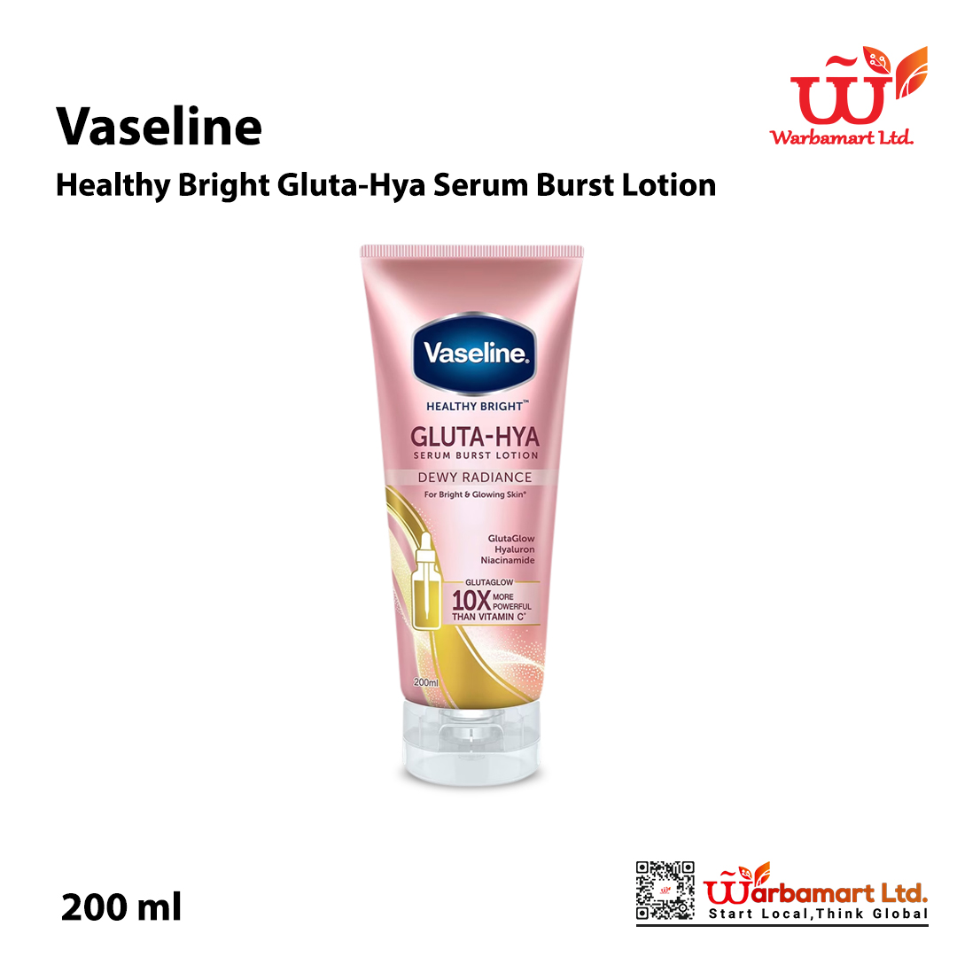 Tired of dull, dry skin? Buy the Vaseline Healthy Bright Gluta-Hya Serum Burst Lotion. This revolutionary concentrate features GlutaGlow™ (10x more powerful than Vit C) and Hyaluron to deeply hydrate and brighten. Its unique serum burst texture absorbs instantly for a non-sticky, dewy finish. Add to cart now for radiant skin